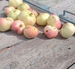 Много малины, черная и красная смородина, красный крыжовник, вишня, слива, три яблони