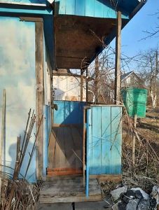На участке расположен дом площадью 15 кв.м., состоящий из веранды, комнаты, коридора и чердака. В комнате есть стол, камод, раскладное кресло. Дом в хорошем состоянии, ремонта не требует. Также на участке есть хозяйственный блок и туалет. Вода подается на участок по времени. Электричество не заведено (рядом с участком установлен электрический столб, быстро и недорого можно провести). На участке произрастают две яблони, вишня, крыжовник, слива, облепиха, смородина, малина.